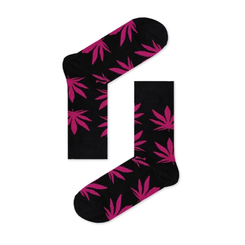 Adix – Fancy Μαύρη κάλτσα με Ροζ σχέδια Weed – One Size