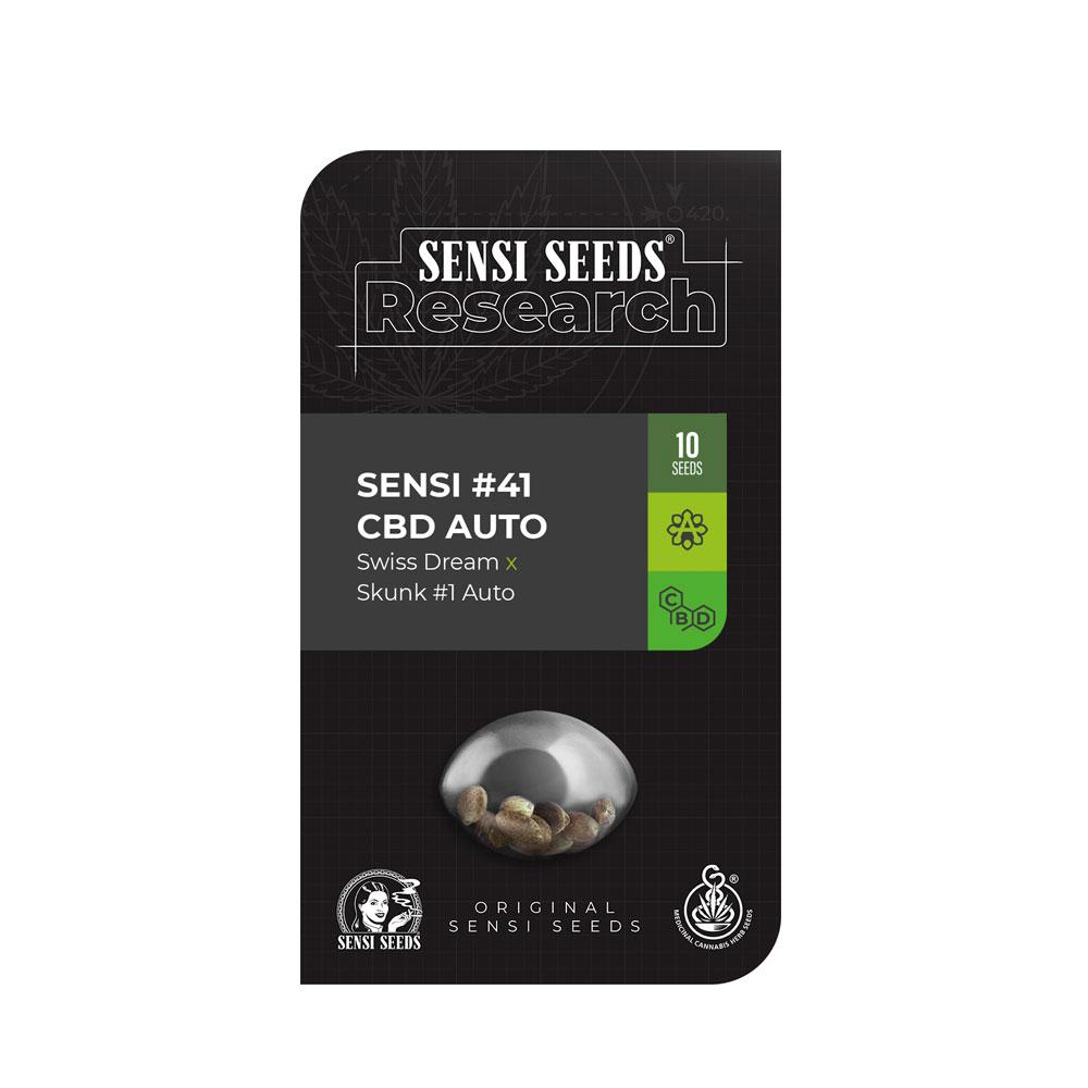 Με μακρόχρονη ιστορία στην Ιταλία και την Ελβετία, η ποικιλία CBD #41 Auto (Swiss Dream x Skunk #1) της εταιρείας Sensi Seeds είναι ένα υβρίδιο Sativa και Indica, που προέρχεται από τη διασταύρωση Swiss Dream και τη θρυλική ποικιλία Skunk #1. Χαρακτηριστικό της είναι το γήινο άρωμα πεύκου και τα πλούσια ρητινώδη άνθη της, που είναι πλούσια σε τερπένια. Πρόκειται για ένα ανθεκτικό φυτό, με μετρίου ύψους, με καταπράσινο φύλλωμα, και συμπαγή άνθη. Προσφέρει μεγάλες αποδόσεις κανναβιδιόλης (7% CBD), γνωστή για τη χαλαρωτική της δύναμη και την καλά ισορροπημένη εγκεφαλική της επίδραση.